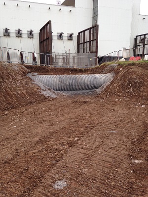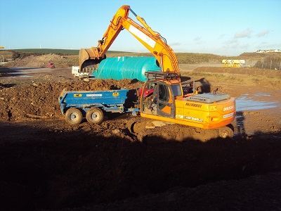 The works include excavation and installation of concrete base/blinding for installation of a 20 x 4m bypass separator tank. Working from existing pipe invert levels of the outflow system we were tasked with installing the tank and connecting 1200mm pipe work to tie into existing out fall pipe work. Having to construct 2 new inspection chambers, demolish and disinvest existing separator including the infill of existing pipe line. Installation of cable ducting and concrete bases to be followed by the lanscaping and infill works to create a new burm to encapsulate the new tank and pipe work.