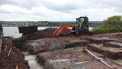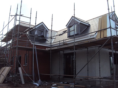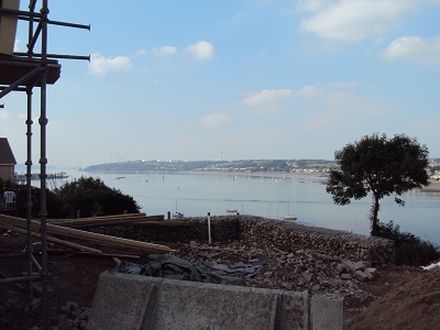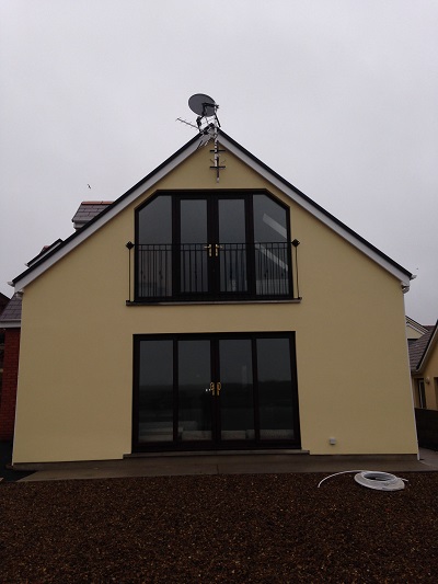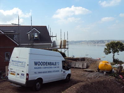 Woodenbale has been constructing a new build at a plot on Connaught Way in Pembroke Dock over looking the estuary. The build has been a traditional block and brick construction dorma bungalow with a large glazed frontage making the most of the picturesque views of the waterway. The initial foundation works were quit extensive on the north side of the plot due to the ground conditions with sections being upto 4m deep before hitting suitable material to build off. A block and beam floor slab construction was favoured over a mass pour slab which meant the construction of the block and brickwork were underway alot quicker than the average build.